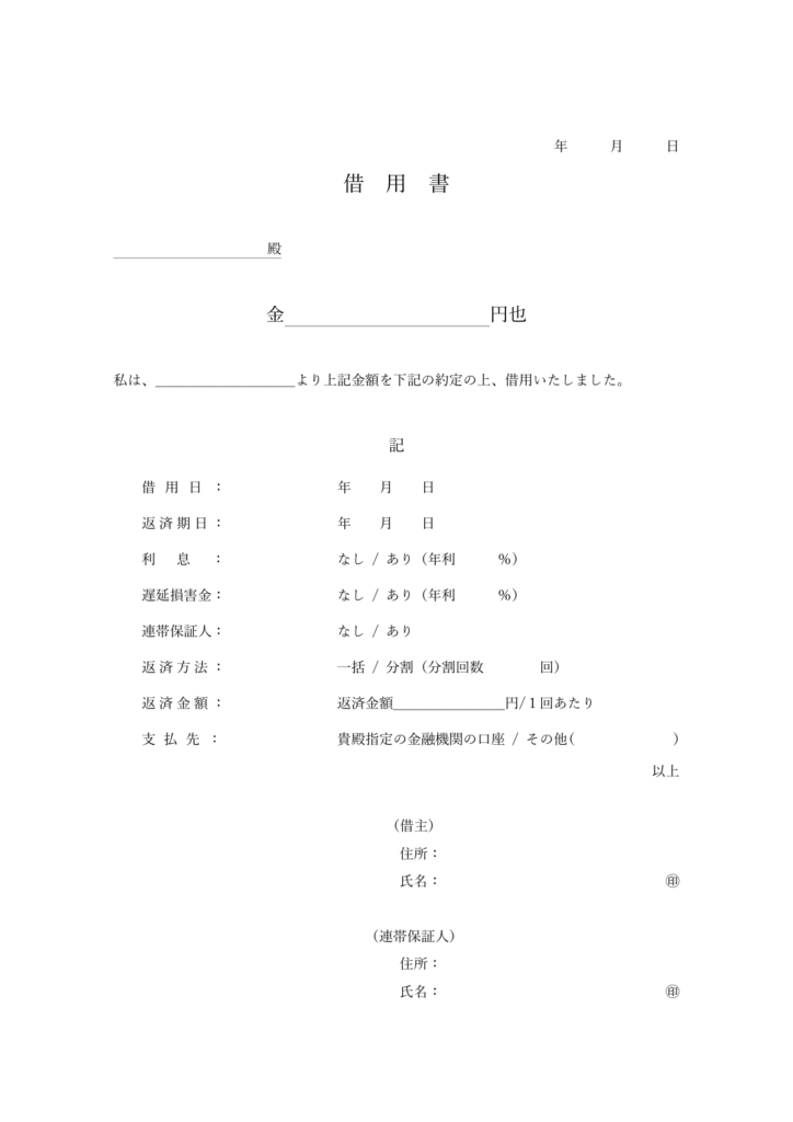 契約金銭誓約書テンプレートを無料ダウンロード rubo8k@gmail.com / enero 19, 2026 無料でダウンロード可能な金銭消費貸借契約書テンプレートです。貸主と借主間の契約内容を明確にするための便利な資料を提供いたします。