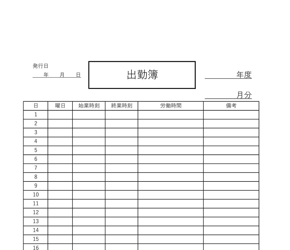 こちらのサイトで無料ダウンロードできる出勤簿テンプレートは、労働契約期間、勤務場所、就業内容、労働時間、休日、賃金情報を網羅しています。利用して効果的に管理を。